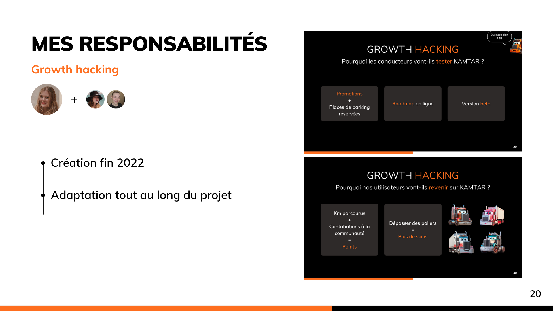 J’ai co-construit le business model de Kamtar, avec un système d’abonnements premium pour les conducteurs et des partenariats avec les entreprises de transport. J’ai mené des analyses concurrentielles approfondies et participé à la création de la stratégie marketing et de lancement. J’ai également conçu des stratégies de growth hacking pour attirer et fidéliser les utilisateurs.